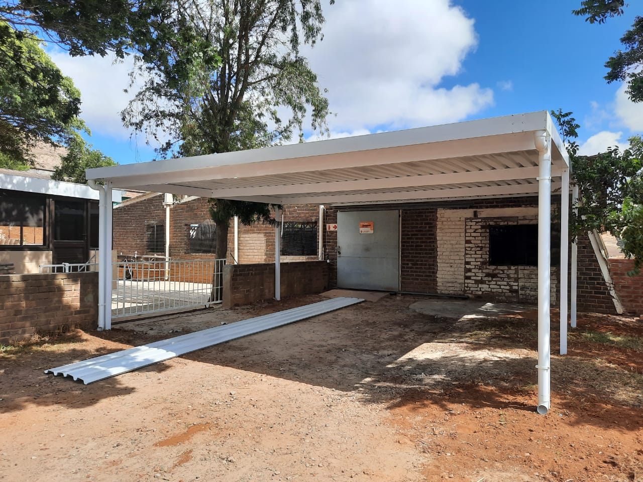 The Integrated Box Gutter System that we use creates the sturdy surrounding framework as well as being visually appealing. The surrounding integrated box gutters are available in White or Charcoal colour.  Sheeting is IBR & available in Colorplus® or Colorbond® and we also offer Polycarbonate Sheeting to allow for additional light (where needed). Colorbond sheeting carries a higher corrosion resistance and with Thermatech™ technology incorporated into the paint system this reflects the sun’s heat, thus a cooler surface temperature.  Polycarbonate sheeting is available in various thicknesses. We only use the 1.25 mm thickness sheet for best protection